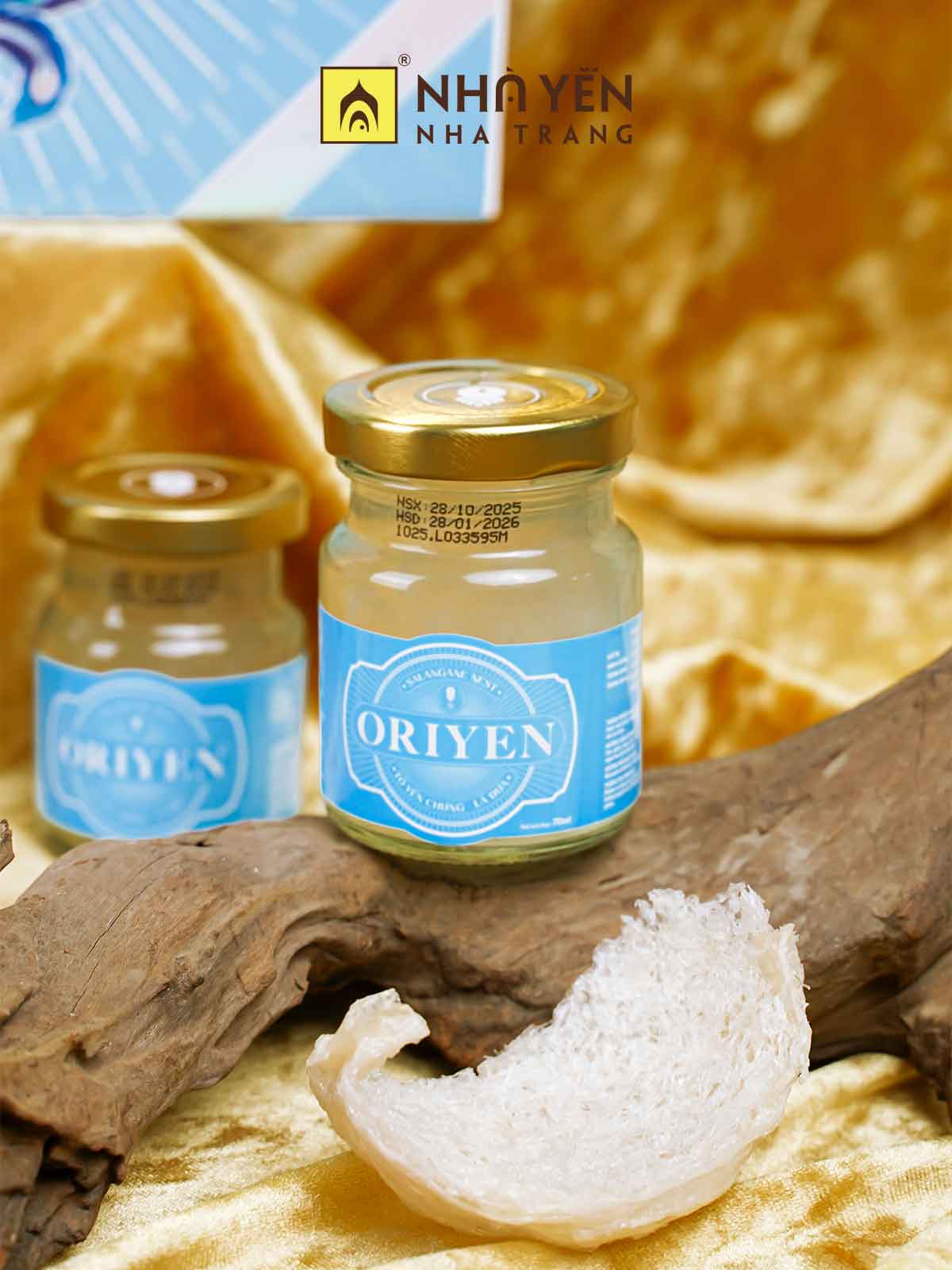 Tổ Yến Chưng Lá Dứa ORIYEN được làm từ các thành phần: Nước tinh khiết, Đường phèn, Tổ yến khô (2g), Hương lá dứa tự nhiên.